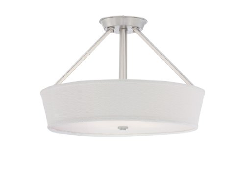 Finish:Brushed Nickel, Size:Large, Light Bulb:(4)100w A19 Med F Incand Waverly semi flush mount ceiling light White Linen fabric shade